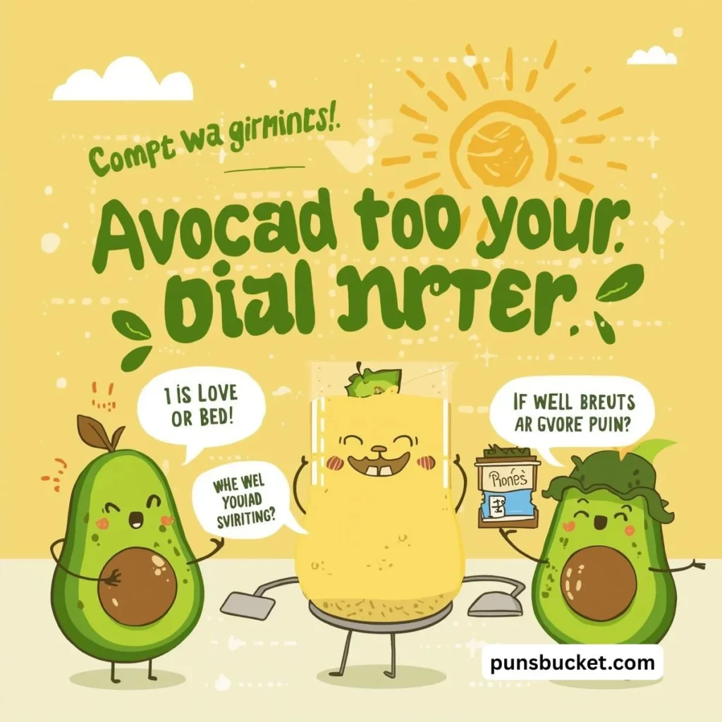 - โฐ Timing is Everything: A pun is best served ripe. Drop it after someone says a word like “great” (“Avo-great!”).